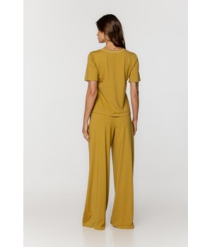 Ockerfarbenes Kurzarm-T-Shirt mit Rundhalsausschnitt aus Viskose und Nylon Größen: XS bis 5XL Länge...
