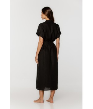 Hauskleid aus Leinen und Viskose, kurze Ärmel, Hemdkragen, durchgehende Knopfleiste und taillierter Schnitt Größen: XS bis 5XL...