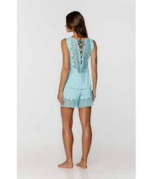 Pyjama-Set aus Mikromodal und Elastan, bestehend aus Oberteil und Shorts. Ärmelloses Oberteil mit V-Ausschnitt und...