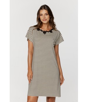 Gestreiftes Pyjama-Set aus Lenzing-Viskose, recycelter Viskose und Elastan. Das Set besteht aus einem Kurzarm-Top mit V-Ausschnitt und Shorts mit Taschen.