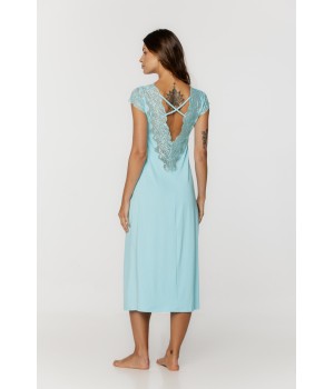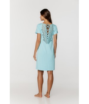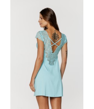 Pyjama-Set aus Mikromodal und Elastan, bestehend aus Oberteil und Shorts. Ärmelloses Oberteil mit V-Ausschnitt und Spitzenbesatz an Brust und Rücken. Shorts mit Spitzenbesatz.