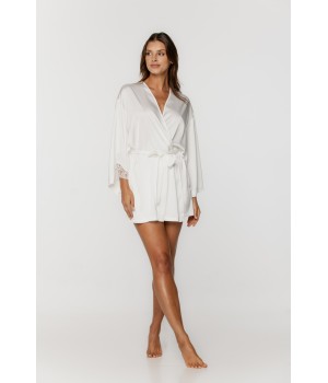 Silky satin negligee with long, flowing sleeves trimmed in lace. Side pockets.Sizes: XS/S to XL/XXLLength (M): 84...