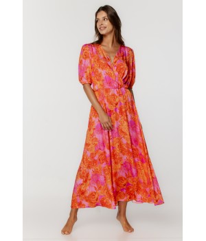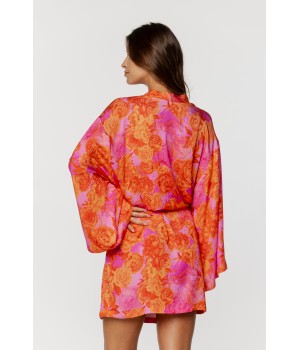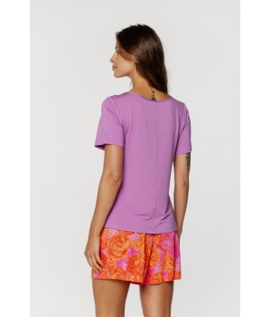 Floral print viscose pyjama set, long-sleeved shirt-style top and loose-fitting trousers