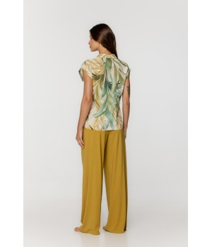 Ensemble pyjama ample en lin et rayonne, haut col chemise boutonnée manches longues, pantalon très ample avec poches...