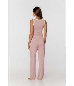 Ensemble pyjama en micromodal et élasthanne, top débardeur souligné d'un liseret sur les bretelles et le col, pantalon fluide...