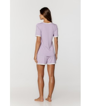 Ensemble de nuit en micromodal et élasthanne, haut manches courtes et col en V souligné d'un liseret blanc et petit short...