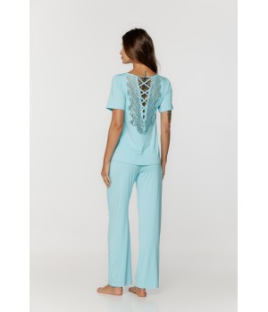 Ensemble pyjama en micromodal et élasthanne, tee-shirt col en V ourlée de dentelle et dos habillé de dentelle et jeu de lacet,...