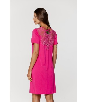 Ensemble pyjama en micromodal et élasthanne composé d'un tee-shirt manches courtes agrémenté de dentelle devant et dans le dos et d'un pantalon fluide.